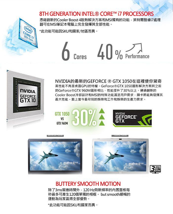 ●顯示晶片規格:NVIDIA GeForce GTX 1050, 4GB GDDR5