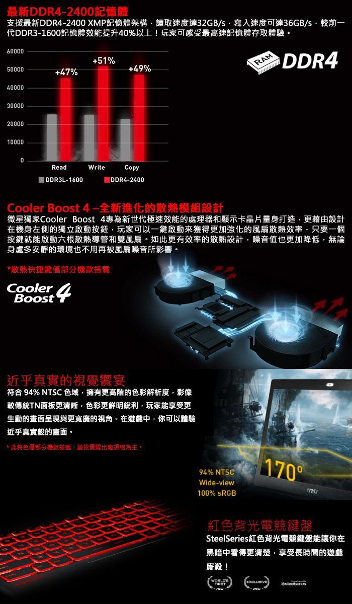 ●鍵盤/輸入裝置:SteelSeries 純色紅光背光鍵盤