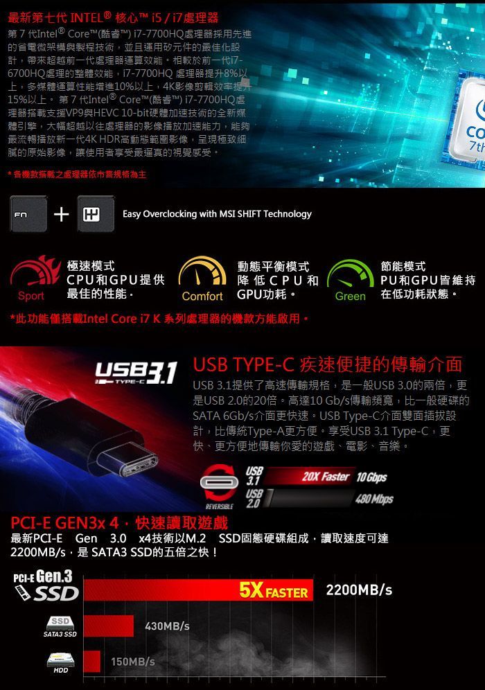 ●處理器:Intel Core i7-7700HQ四核心處理器
