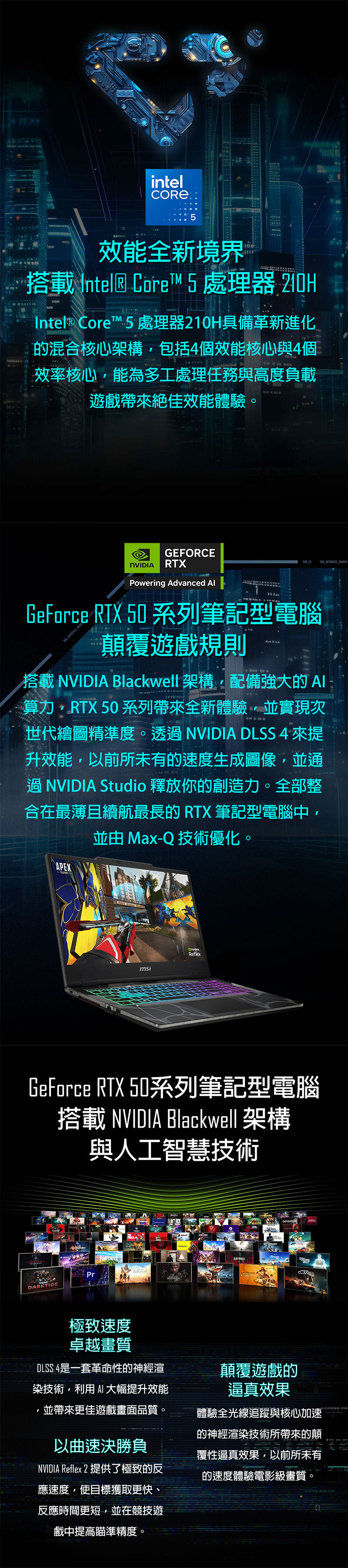 ●處理器:Intel Core 5-210H (2.2GHz/Turbo 4.8GHz)(Cache 12MB)