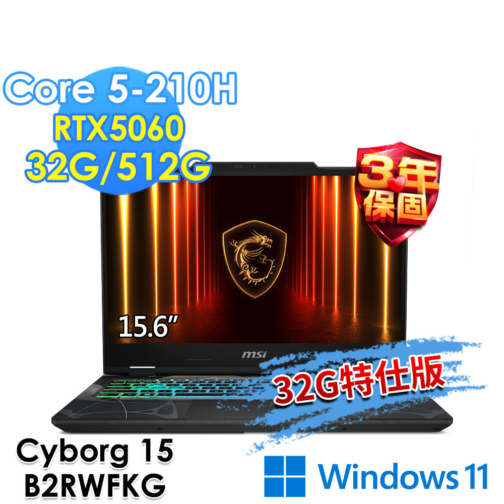 ●公司料號:Cyborg 15 B2RWFKG-891TW-TBC5210H16GXXDX11MH