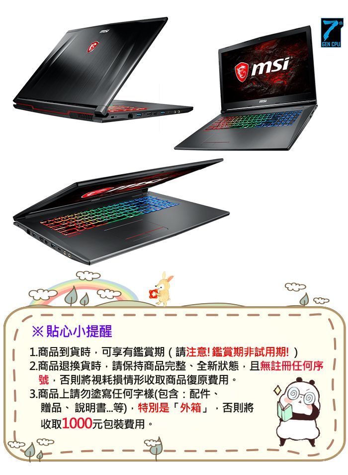 ●處理器:INTEL i7-7700HQ,2.8 GHz