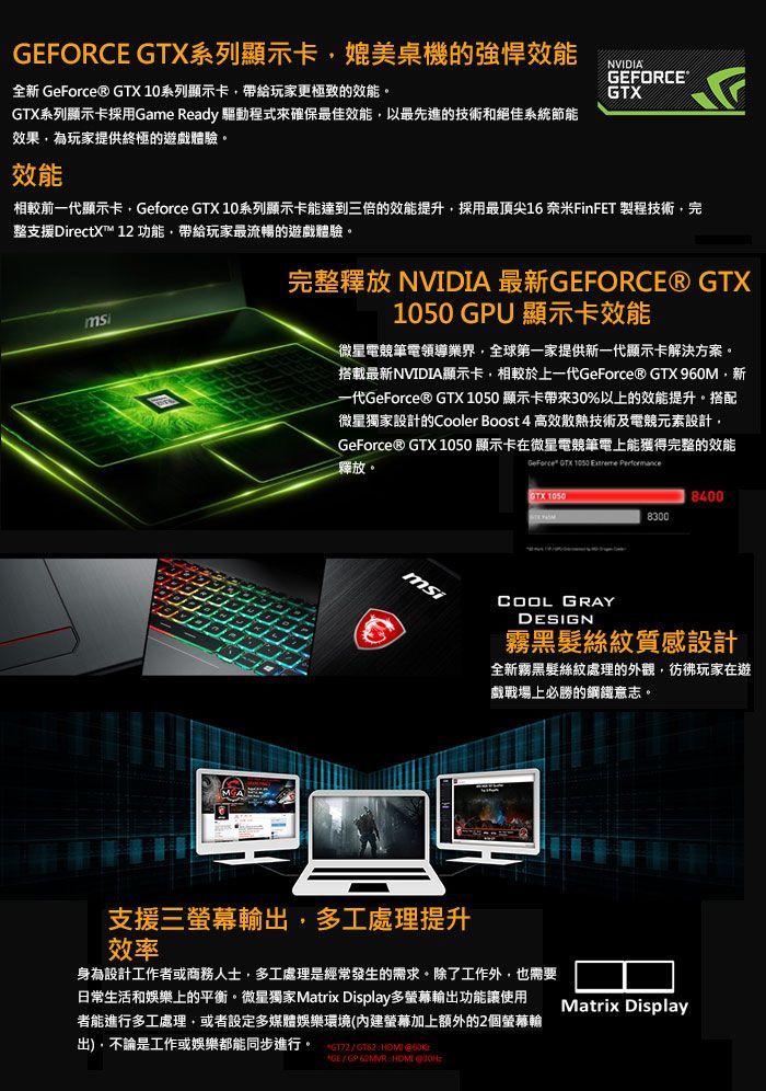 ●顯示卡:NVIDIAR GeForceR GTX 1050,4GB