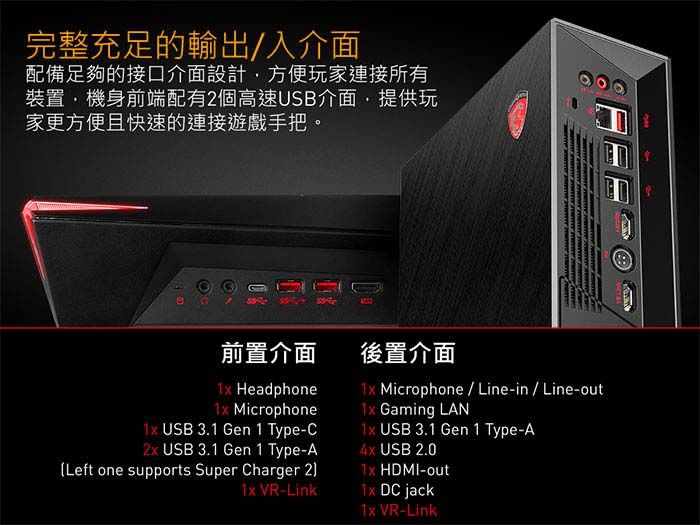 - 1組 HDMI in (connect Graphic card and front VR-Link port)