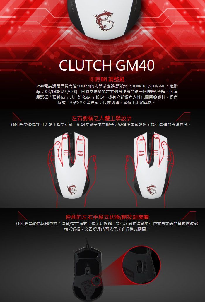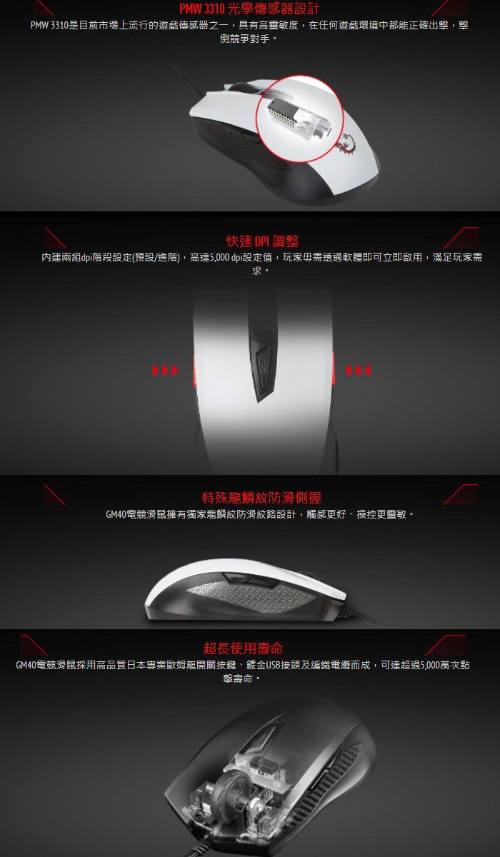 ●DPI SWITCH:Default: 預設:1000-1800-2800-3600 /進階:800-1600-3200-5000