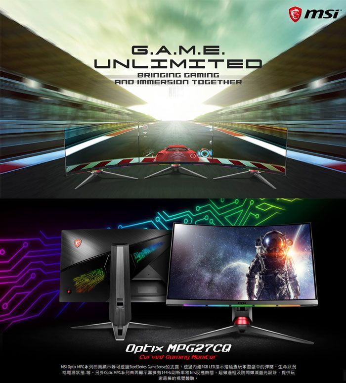 ●曲面螢幕:1800R