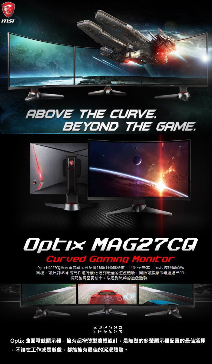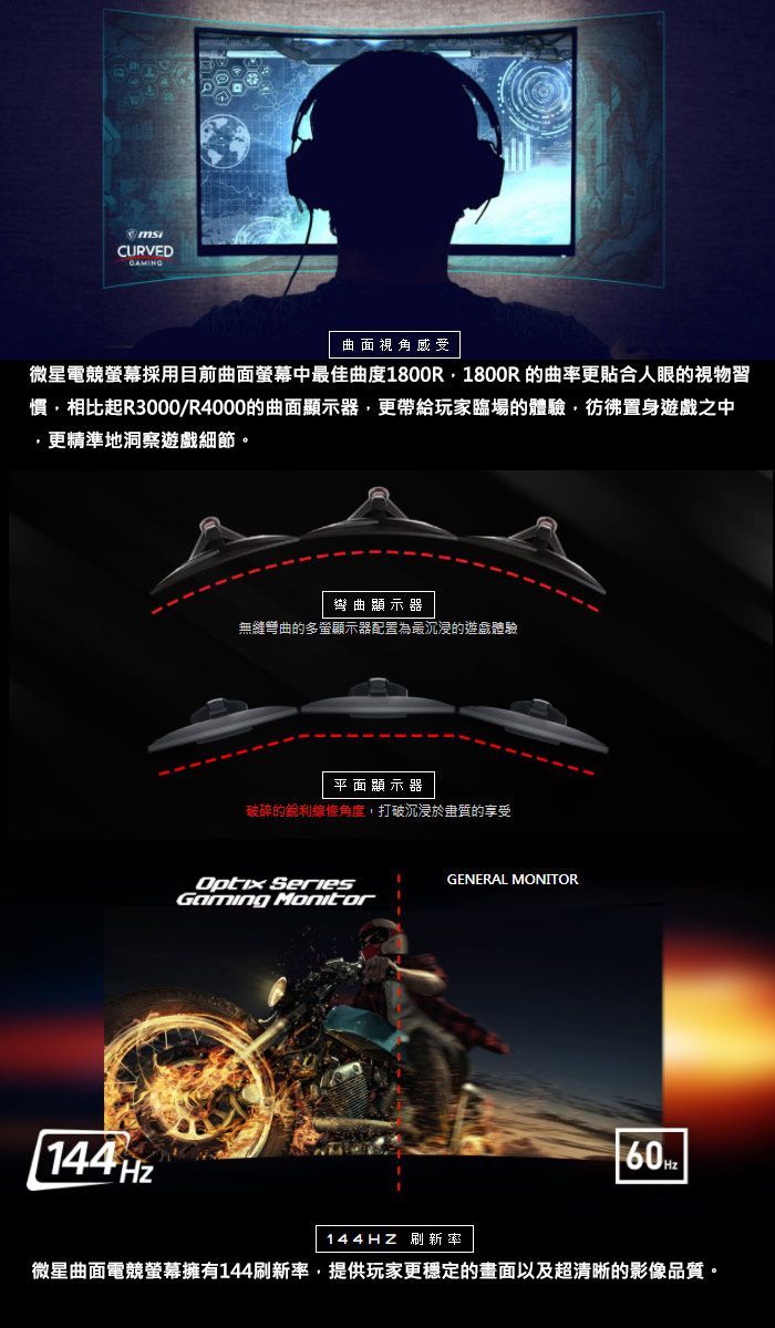 ●曲面螢幕:1800R