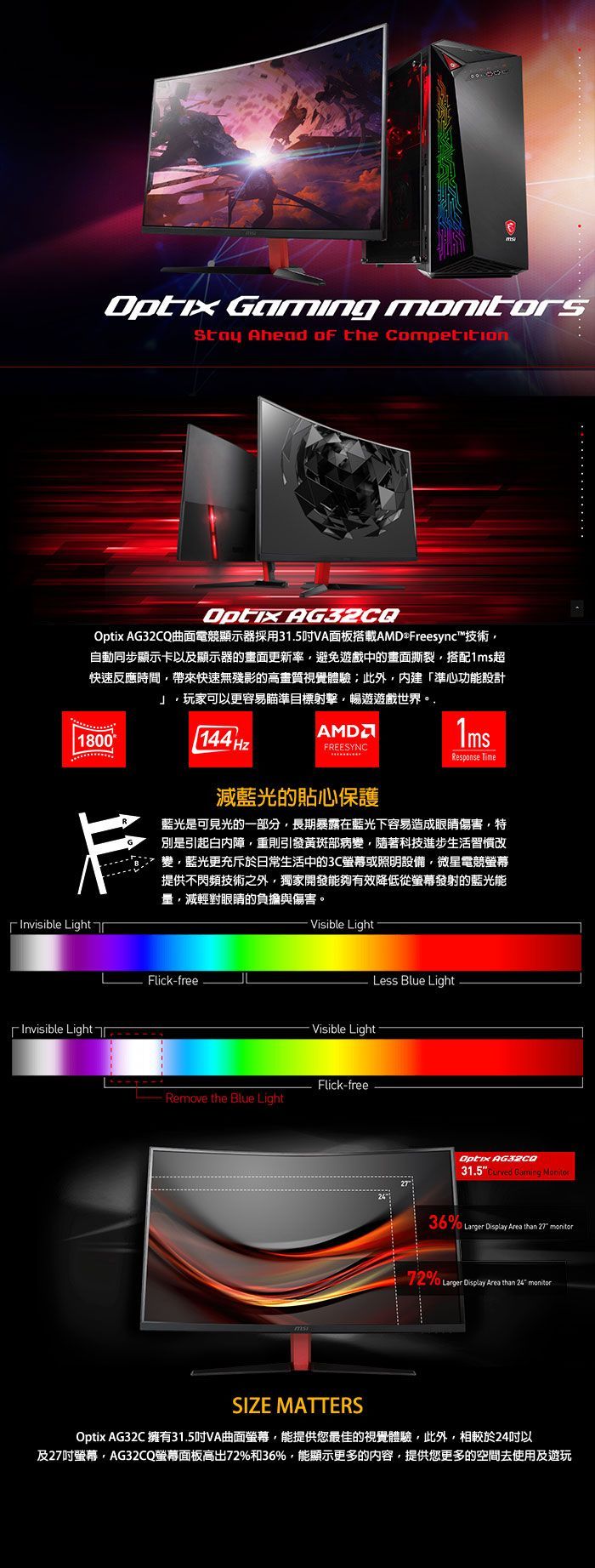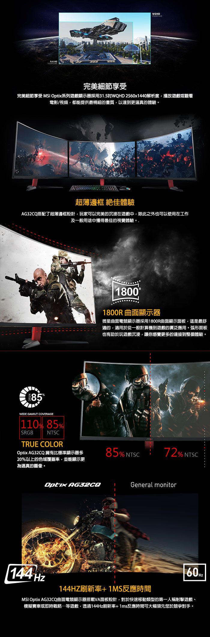 ●曲面螢幕:1800R